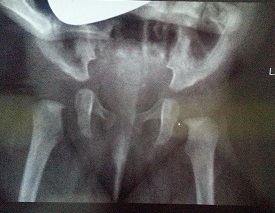 -różny wygląd obu stawów ; asymetria w wypukłości pachwiny spowodowana przesunięciem głowy kości .