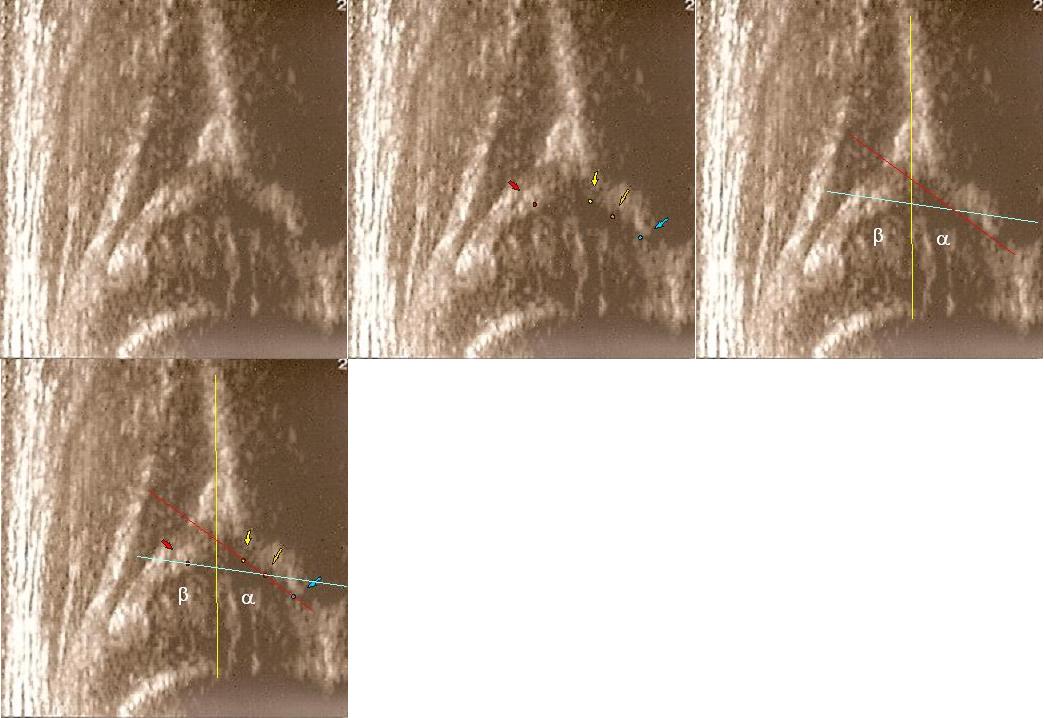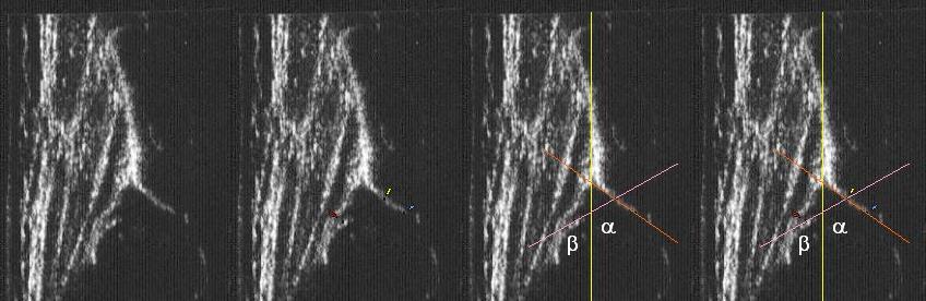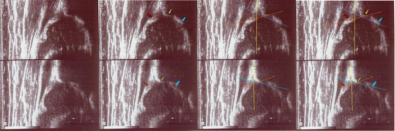 poniżej różnica między obrazem a pomiarem automatycznym  kątów przez aparat usg