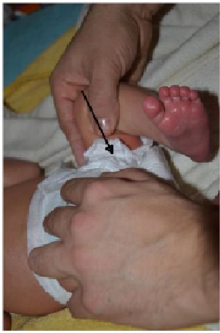Here we see photographs showing one of the techniques of the neurodevelopmental therapy according to the NDT-Bobath method, called dissociation. In this case the part undergoing therapy is the left hip.