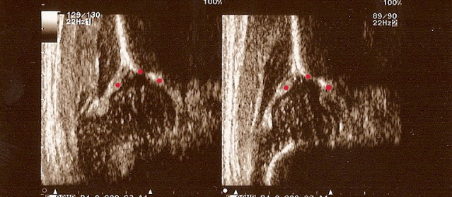 2.Leczenie w przypadku wykrycia nieprawidłowości, która się samoistnie nie odbudowuje oraz kontrola efektów terapeutycznych. Badanie wymaga ultrasonografu z głowicą linearną umożliwiającego otrzymanie standardowego obrazu stawu biodrowego, urządzenia do dokumentacji i odpowiednio przeszkolonego lekarza,potrafiącego ocenić stan biodra.